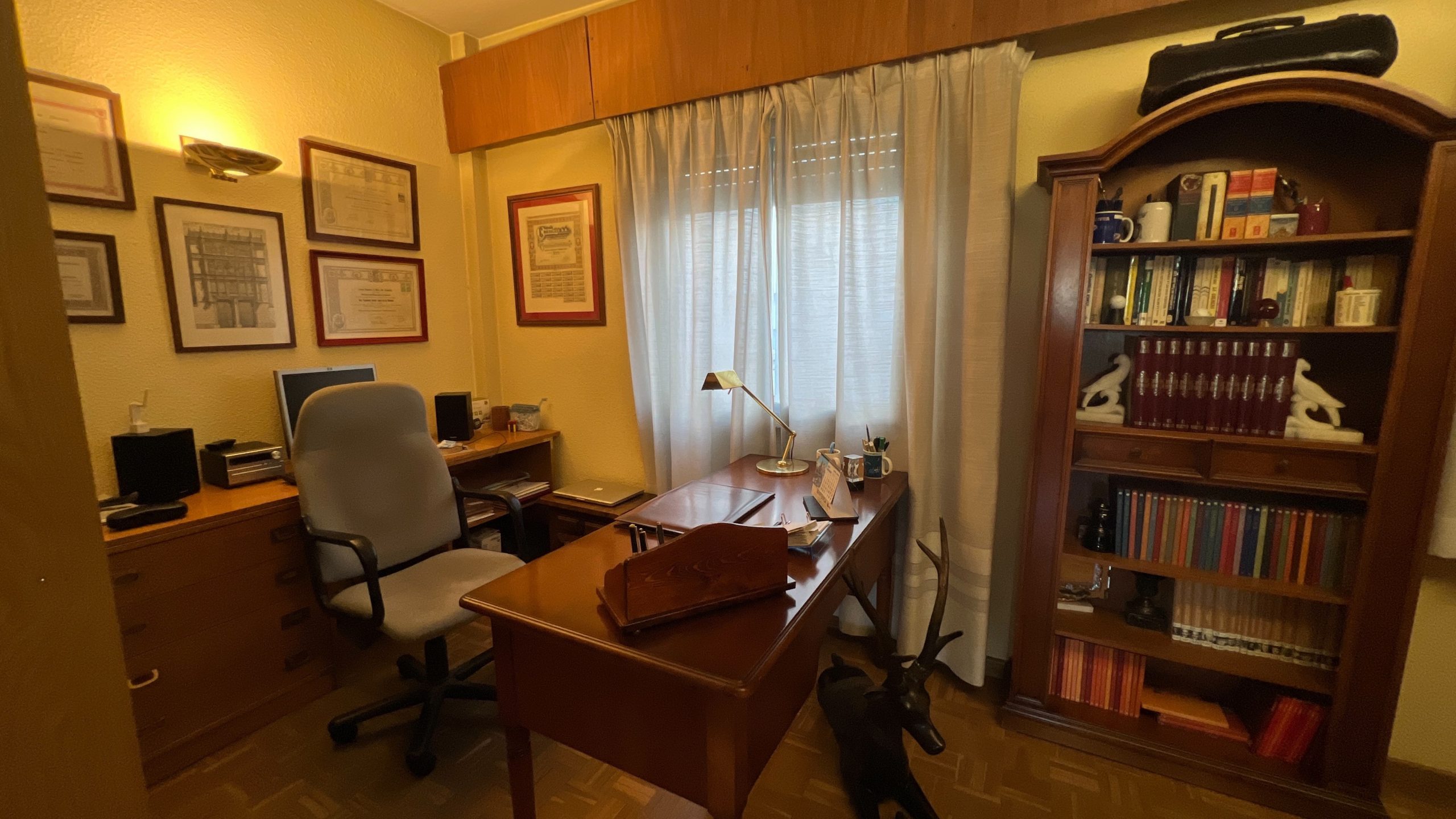 se distribuye, actualmente, en un amplio salón comedor, cocina independiente con terraza tendedero y zona de lavadero con aseo, dormitorio principal con baño en suite y un amplio despacho, tres dormitorios más, que comparten otro cuarto de baño y una quinta habitación individual.Características destacadas: