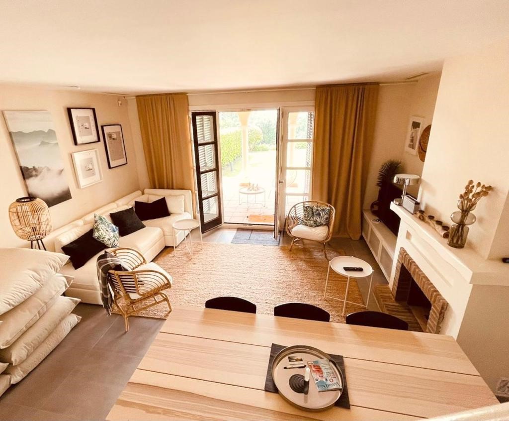 Salón-comedor con una hermosa chimenea central, que se abre a una cristalera con acceso a una terraza techada y un jardín privado.